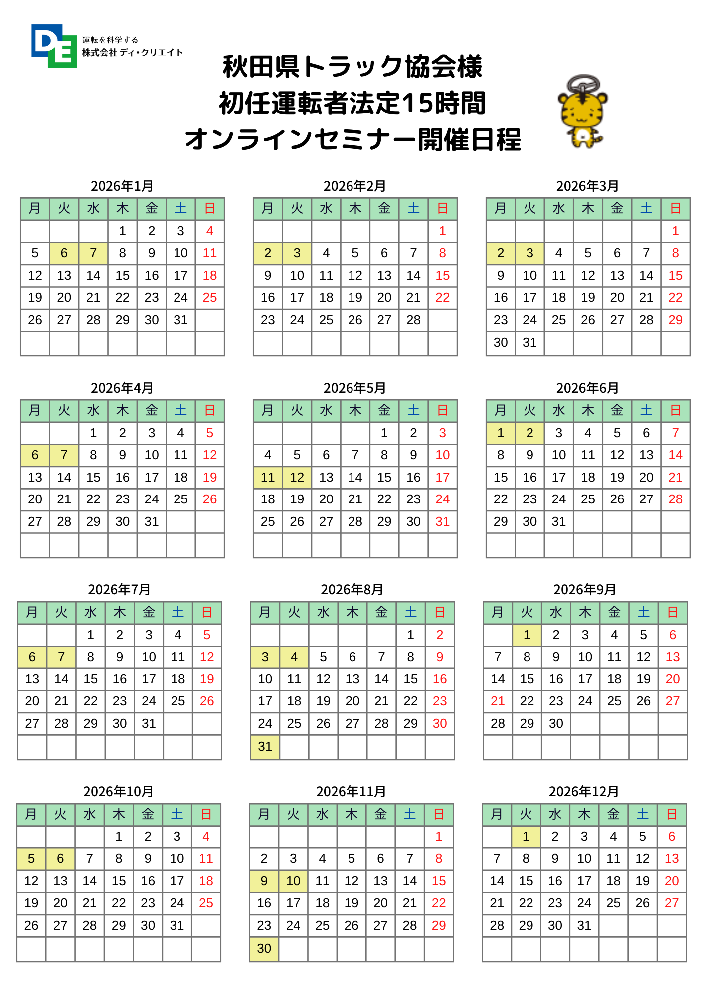 スケジュールを確認の上、下記より入力をお願いします。
